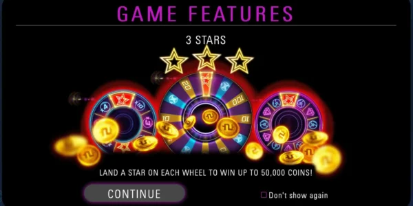 The defining mechanic of Stars Crazy Wheels is its wheel bonus system. When activated, a large prize wheel spins to award one of several outcomes. These outcomes can include instant cash prizes, Multipliers, additional wheel spins, feature upgrades and Free Spins triggers.