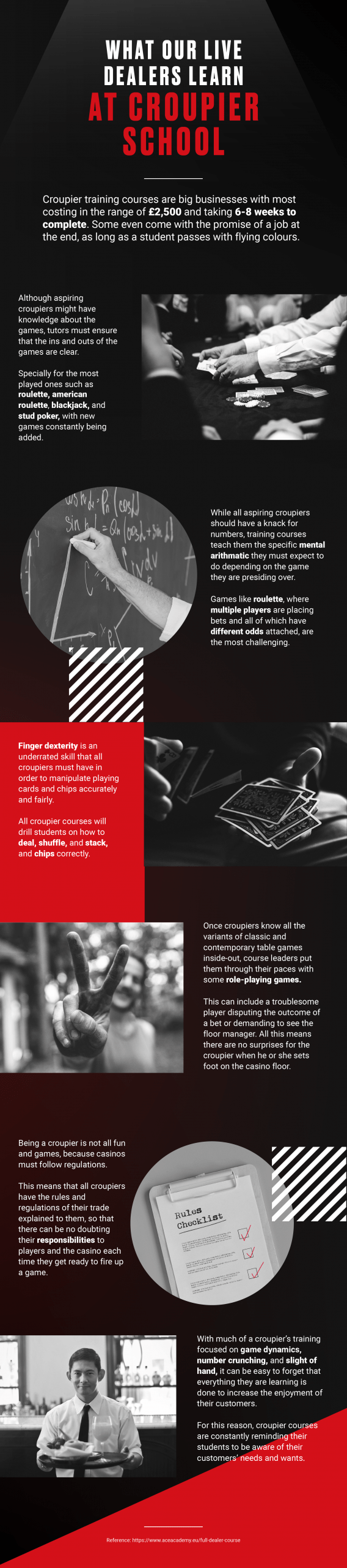 Online casinos are now looking to bolster their offerings with games that put croupiers front and centre of the action. Let’s take a look at exactly what prospective croupiers get taught at the intensive courses run by specialist croupier schools.
