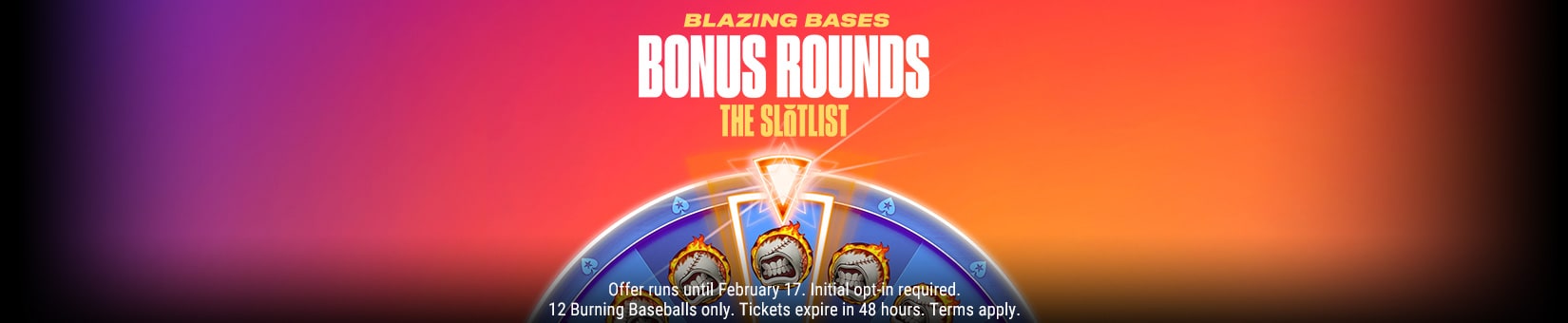 Just opt-in, grab your bat and head to 12 Burning Baseballs to start. The Blazing Bases Bonus Round Wheel can strike without warning.
