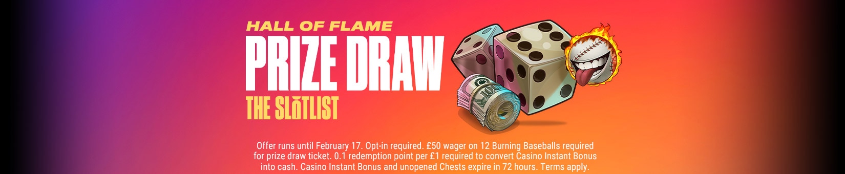 Players who complete a Casino challenge during the offer period, as specified below, can claim an entry to the $25K Hall of Flame Prize Draw and be in with a chance to win a prize in the form of cash or Casino Instant Bonuses.