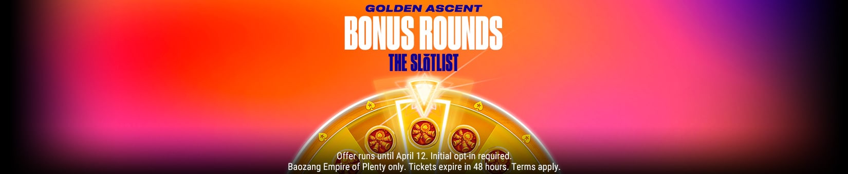 Just opt-in, and head to Baozang Empire of Plenty to start. The Golden Ascent Bonus Rounds Wheel can activate on any spin.