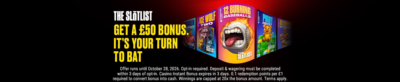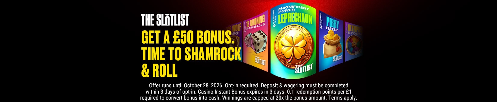 To turn your Casino Instant Bonus (and any winnings) into cash that can be withdrawn, you’ll need to play selected slots to earn redemption points. These slots include our latest Slotlist titles – including an exclusive headline act loaded with unique features and fun ways to win big.