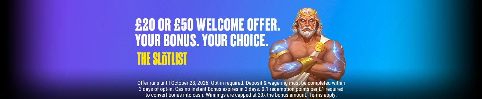 In a nutshell, you can score a Casino Instant Bonus worth either £20 or £50. To secure either of these, you need to complete the associated deposit and wagering challenge: