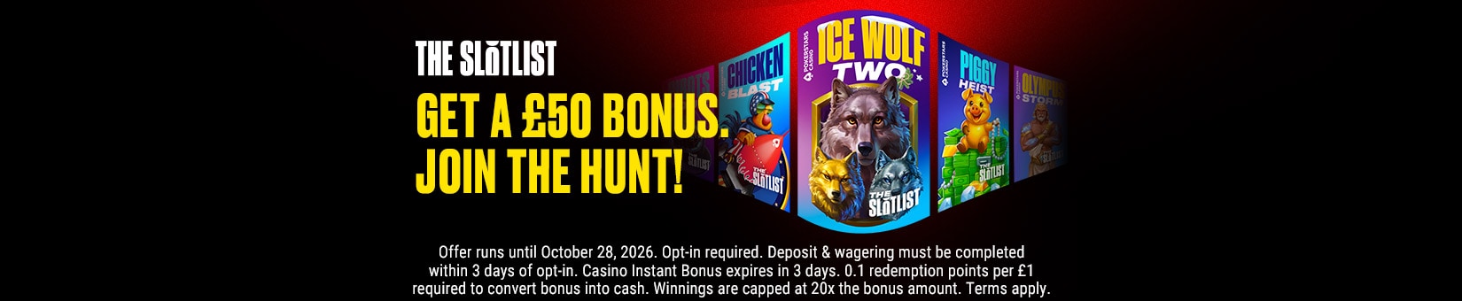 Casino Instant Bonus can be used to play on Wolf Legend Megaways, Buffalo Rising Megaways JPK, Fishin Frenzy JPK, Eye of Horus Megaways JPK, Zeus VS Hades Gods of War, Chicken Blast 94 Big Blue Bounty Wild And Win 94, Gifts of Ra, Perfect Pair Blackjack, Live PokerStars Roulette or available Slotlist games. To convert the Casino Instant Bonus, and any winnings, into cash that can be withdrawn, players must earn 0.1 redemption points per £1 of Casino Instant Bonus awarded before the bonus expires.