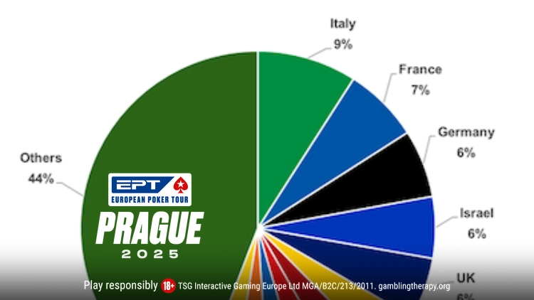 Prague has always prospered by its perfect location at the centre of Europe, drawing the most diverse field of all EPTs. There were players in this field from 62 nationalities, though the biggest contingent (the 79 players from Italy) represent only 9.1% of the total field.