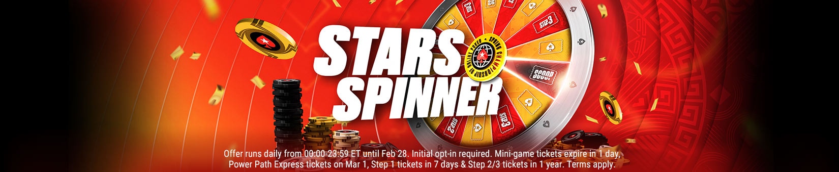 Players who win an entry to a SCOOP Stars Spinner Prize Draw will be automatically registered in the next draw. SCOOP Stars Spinner Prize Draws will run daily between February 20 and March 1 at 00:05 ET. Each daily draw will award 100 x Power Path Express: SCOOP Edition tickets. Entry to each daily draw is limited to one per player.