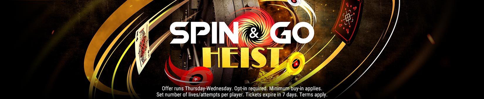 This is Spin & Go Heist, where your mission is simple: win Spin & Go tournaments and dodge failure to win prizes. And if you do, you can win up to 5x your lowest buy-in as Spin & Go tickets.